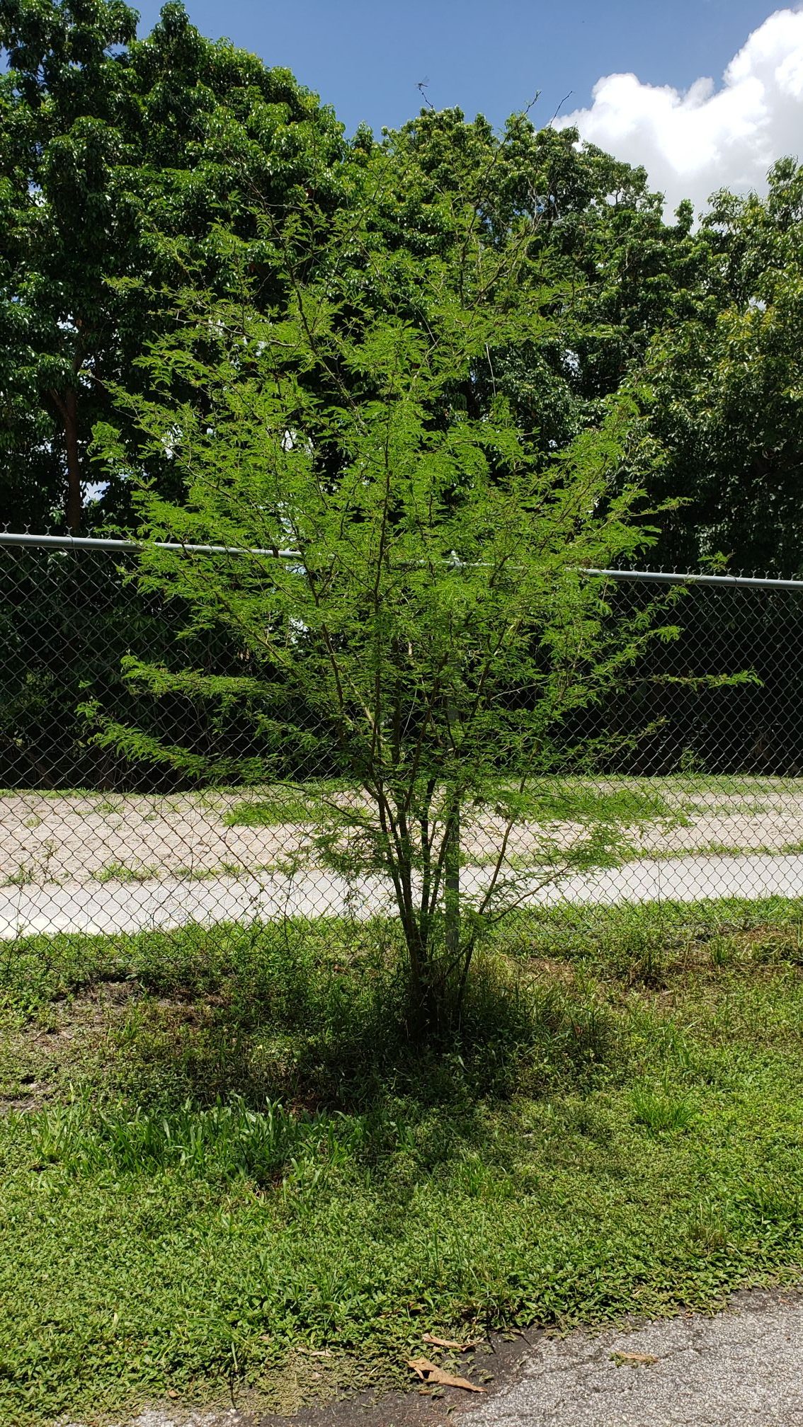 Spiny shrub or small tree to 25′. Foliage doubly pinnate, bluish-green, finely textured. Flowers yellow pom-poms to 1/2″ in diameter, attractive to pollinators.